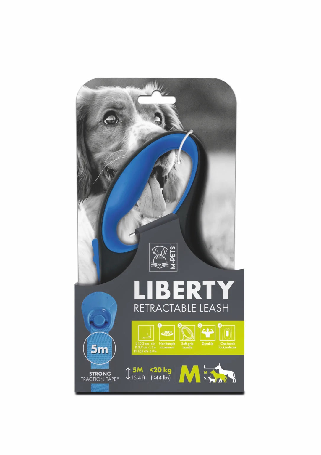 MPETS RETRACTABLE LEASH LIBERTY BLUE It is a retractable leash for dogs, safe and very comfortable for walks.