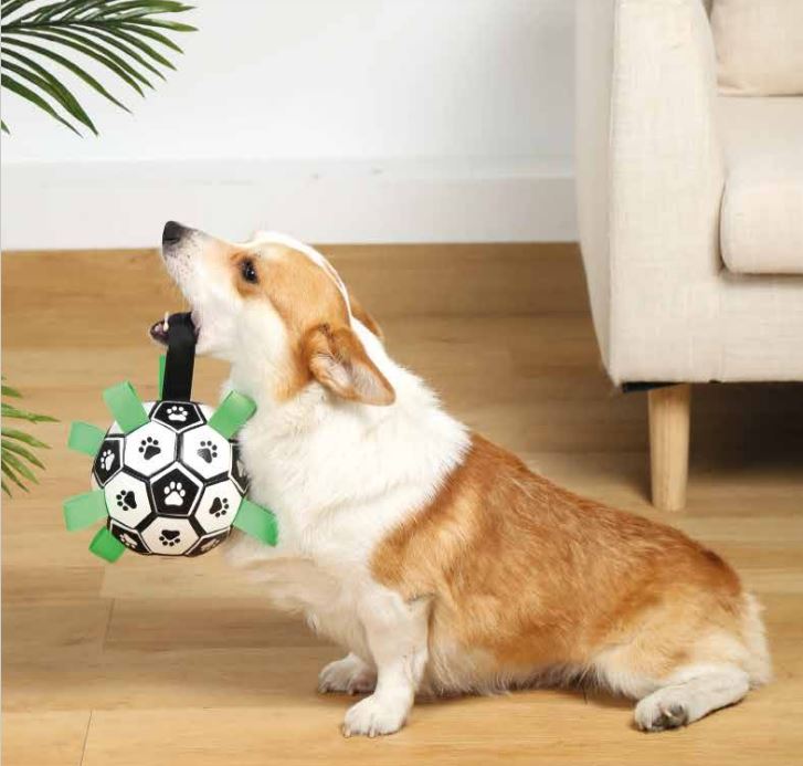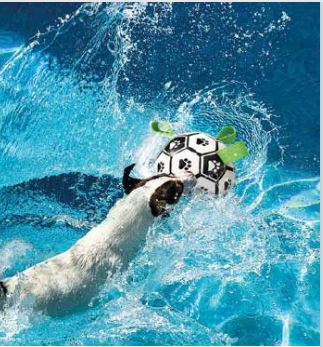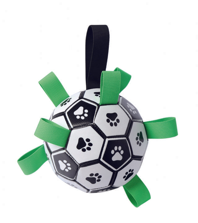 Introducing our innovative soccer ball designed especially for active, water-loving dogs. This ball not only features the classic soccer ball design, but it also floats in water, making it the perfect toy for water games and fun days at the beach or pool. In addition, it has sturdy handles that make it easy to grip and promote interactive play and training sessions with your pet. Made from durable and safe materials, our dog soccer ball guarantees hours of entertainment both on land and in water. Add excitement to outdoor play times with this ball designed for active and adventurous dogs!